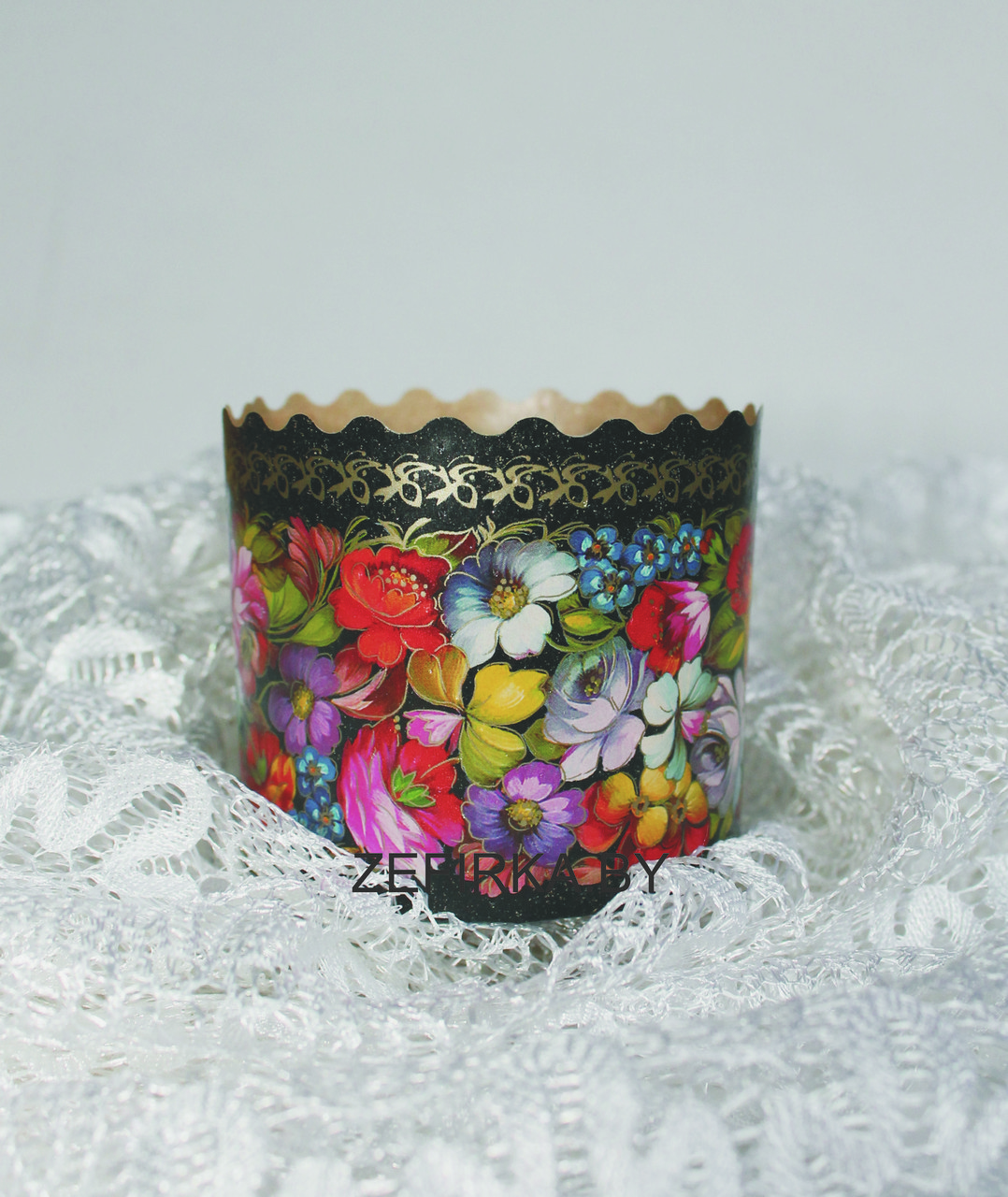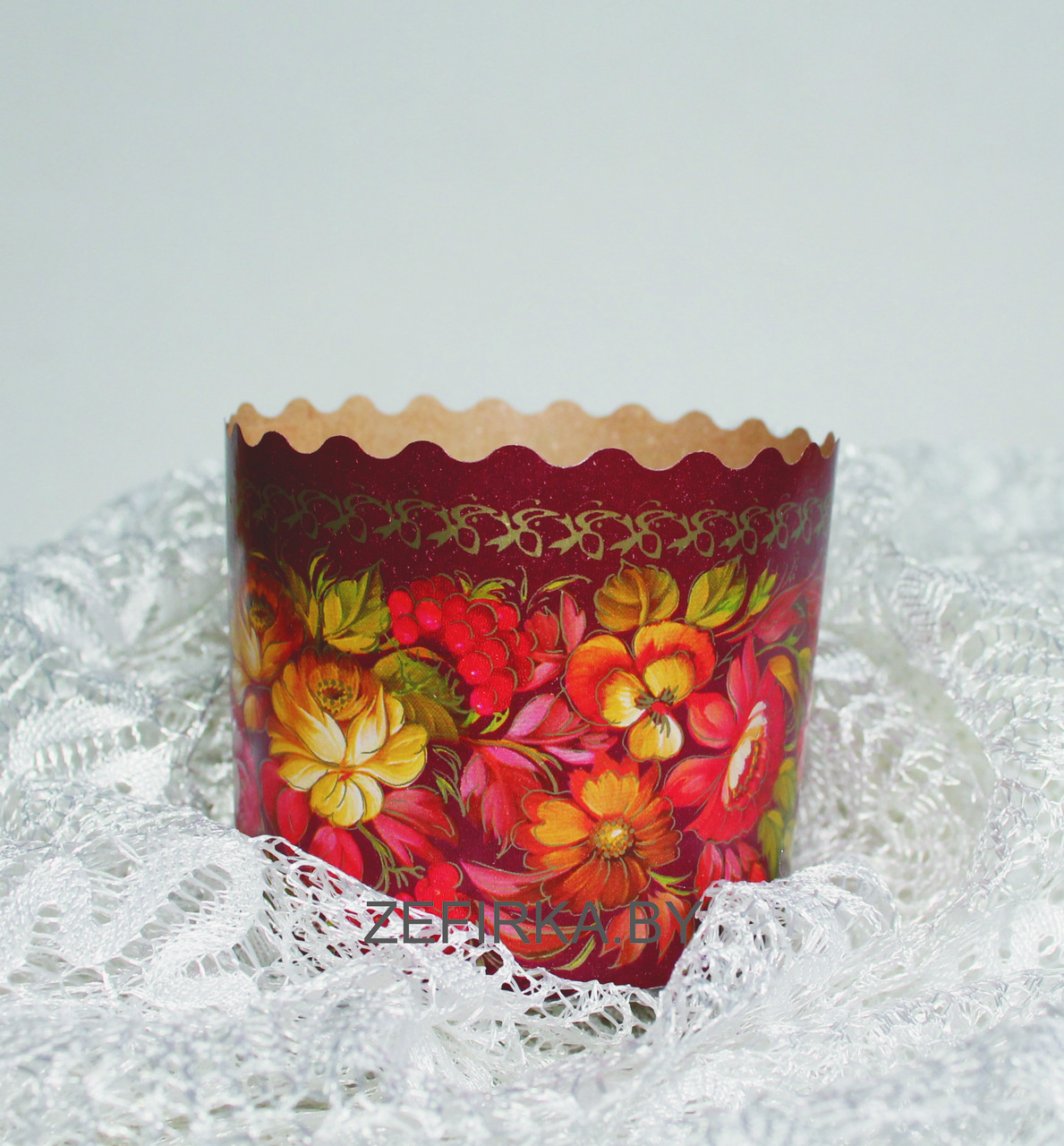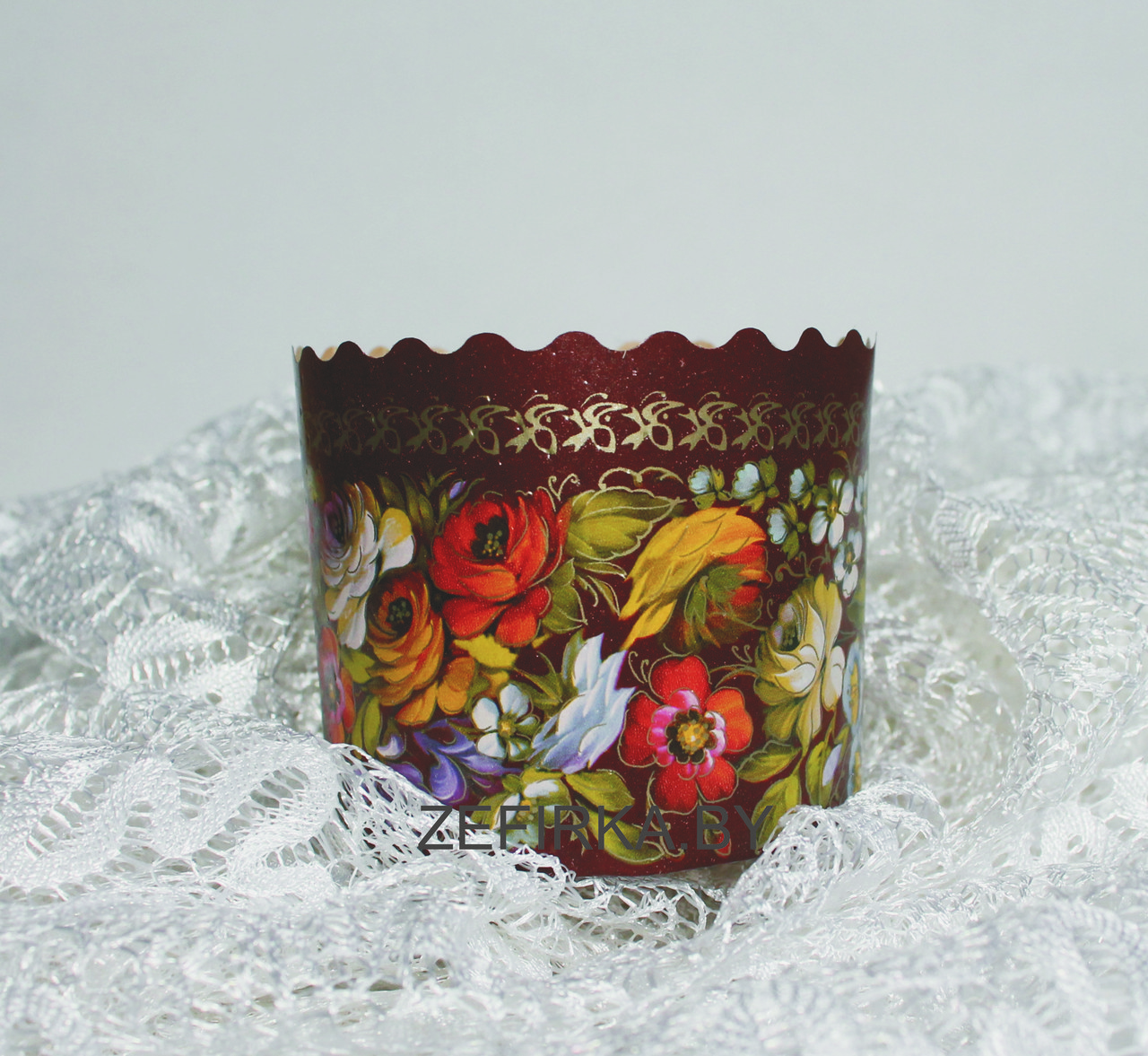 Диаметр дна 70 мм., высота 60 мм. Плотность бумаги 115г/м2. Вес готового кулича ~ 100 гр.